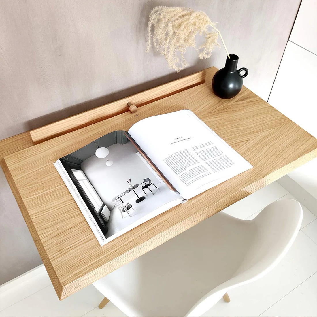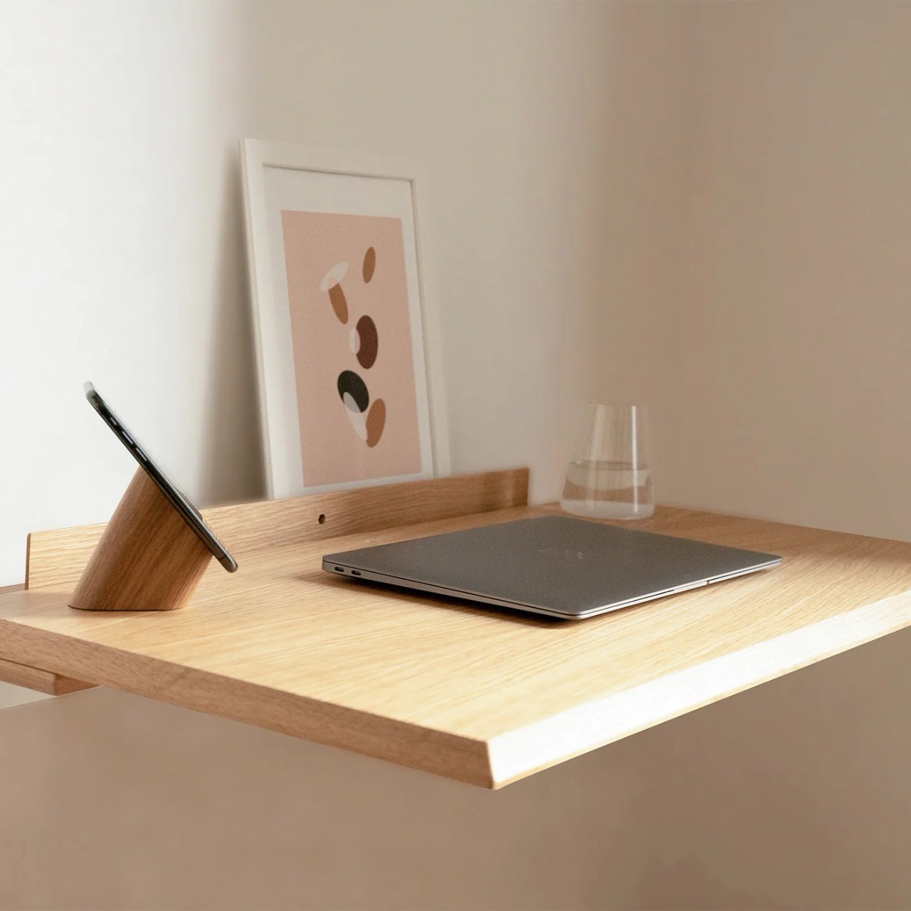 Notre bureau pliant mural.  Idéal pour les petits espaces, ce bureau intelligent se fixe directement au mur et se replie facilement après utilisation. Que ce soit pour le télétravail, les études ou un coin créatif, il offre une surface stable et élégante sans encombrer votre intérieur.